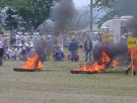 幾度となく重ねた動作でも、いざ本番となると、緊張が先きに走り、訓練の成果を生かせない方もいらっしゃいました。やはり見られている事は、大変なようです。心配された雨も、さほどひどくは感じられず、無事に演習を終了出来ました。